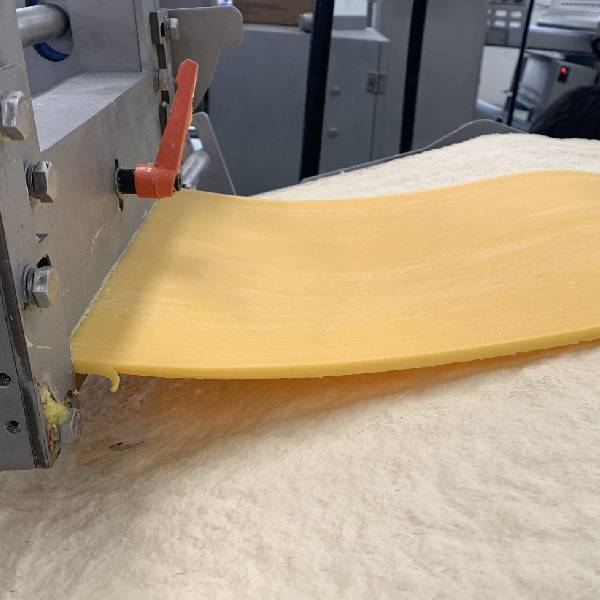 Laminated dough blocks are produced on this stand-alone line. Compact design makes the line flexible enough for producing dough blocks for puff pastry, Danish pastry, croissants, palmier, ect.